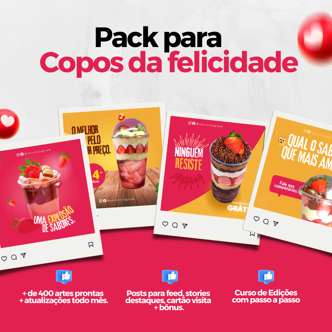 - Não perca mais tempo procurando por inspiração ou lutando para criar seus próprios designs. Deixe o Pack Copos da Felicidade fazer o trabalho pesado para você, permitindo que você se concentre em encantar seus clientes com seus Copos da Felicidade personalizados.