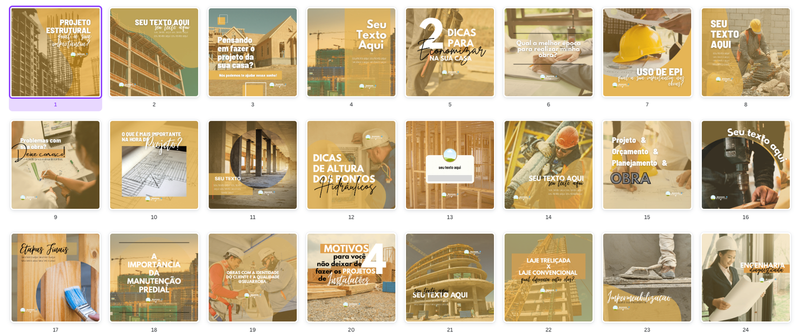 25 Templates Quadrados: Esses designs são perfeitos para compartilhar informações técnicas, dicas de construção e fotos de seus projetos de forma impactante.