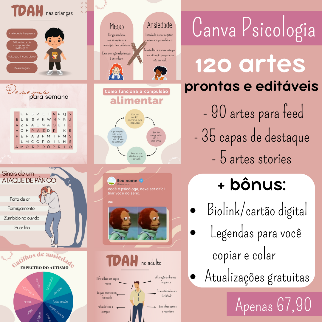 O Canva Psicologia foi desenvolvido para quem trabalha com psicologia, seja adulto ou infantil.